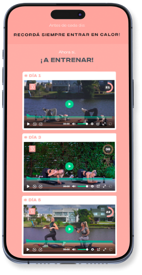 Clases diarias y cortas para que puedas realizar en cualquier momento del día. Son clases grabadas en tiempo real para que las hagas cuando desees, play y a trabajar.